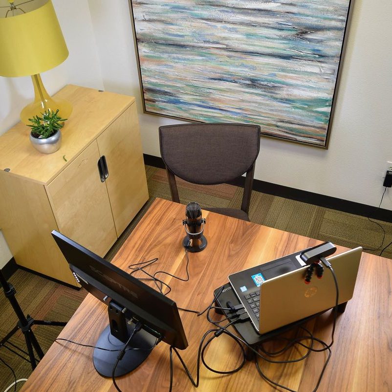We have the basic equipment on-hand to create professional-looking web streams, webinars, video meetings, and product shoots. There are several nice backgrounds in our space, but you are welcome to bring any props, backdrops, or background you like. We’re happy set some equipment up for you beforehand to make your booked time run as smoothly as possible. In addition to our equipment, you have access to the full space and all of its amenities.